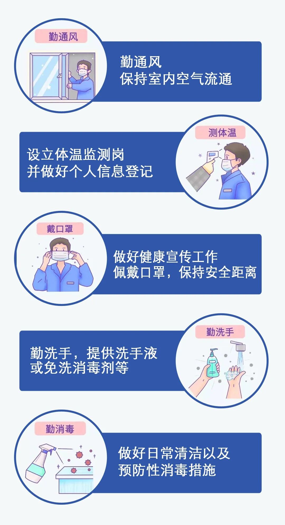 各工厂的车间、会议室、办公室等人员密集场所应保持开窗通风(不含中央空调),每天上下午各至少两次,每次30分钟。